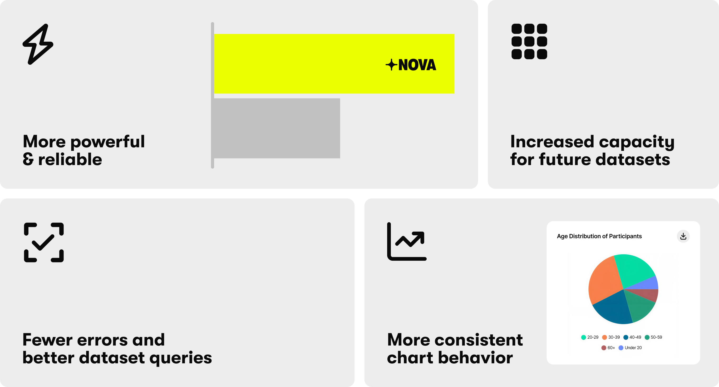We’ve rolled out a significant upgrade to how Nova processes data and serves insights. You will now see noticeably faster performance - 50% improvement - along with more reliable handling of complex multi dataset queries and more consistent chart behaviour throughout the product.